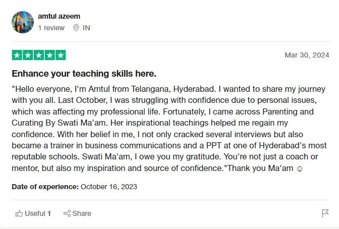 Hi, I am Swati Tripathi. I am a certified parenting coach and professional teacher’s. have trained more than 10000+ teachers and 8000+ parents through online and offline workshops ..